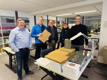Die Zeitschrift WÉSTFALEN und die Westfälische Zeitschrift wurde am Wochenende von fleißigen Händen verpackt und für den Versand an unsere Mitglieder vorbereitet. Freuen Sie sich auf eine spannende Lektüre! Auf dem Bild v. l. Jonas Eberhardt, Jürgen Meyer, Michael Ströhmer, Marianne Moser und Andreas Neuwöhner
