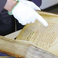 - Das Evangeliar wird auf seine Echtheit überprüft. Museum Abtei Liesborn