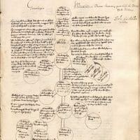 - Innerhalb des Textes der Westfalengeschichte sowie am Ende der Handschrift finden sich eine Reihe von Stammbäumen, die nicht vollständig in den Druck übernommen wurden. Eine genaue Analyse des Inhalts dieser schematischen Darstellungen steht bislang noch aus. Foto: Museum Abtei Liesborn des Kreises Warendorf