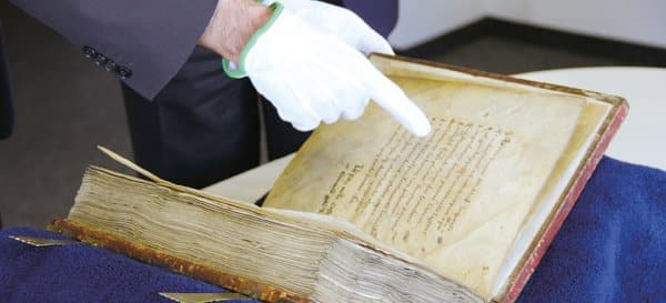 - Das Evangeliar wird auf seine Echtheit überprüft. Museum Abtei Liesborn